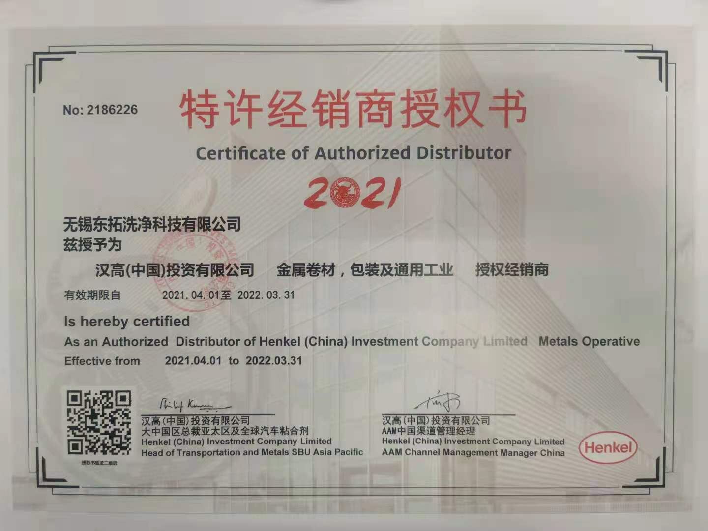 时间过得飞快,不知不觉东拓与汉高的合作已经有8个(gè)年头了。非常荣幸能与汉高这(zhè)样的表面处理大咖合作,与汉高的合作过程中能更好服(fú)务于广大通用工业清洗领域客户。过去八年中,东拓科技(jì)在汉高(gāo)(Henkel)的支持下已(yǐ)与众多企业达成了良好的合作关系(xì)。相信以(yǐ)汉高全(quán)球最大、最先进的表面(miàn)处理技术为后盾,东拓科技在(zài)新的一年里,能够提供更专业、更优质的产(chǎn)品、与服务,与广大(dà)客户达成更(gèng)大的共赢。