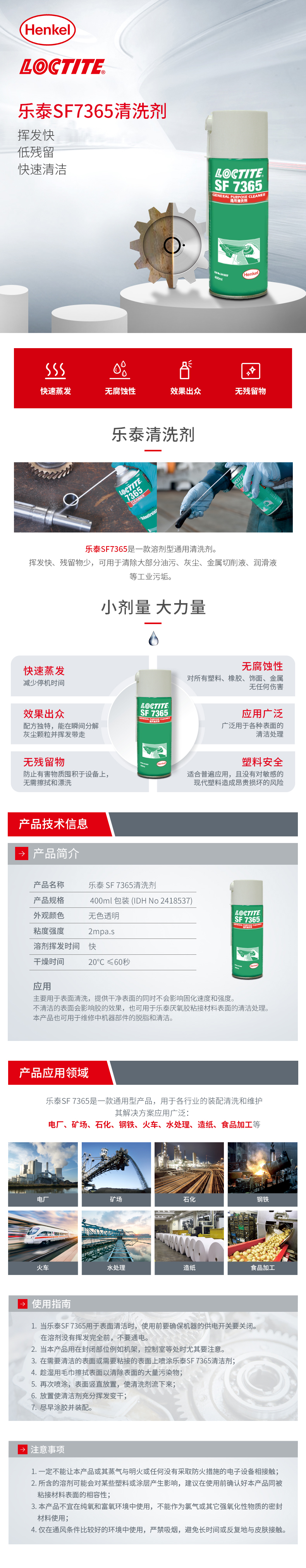 漢高樂(lè)泰清洗劑SF7365為一(yī)款通用型溶劑工業清洗劑,特點為揮發快(kuài)、殘留少(shǎo)、使用方便、能滿足多場景的油汙清洗。