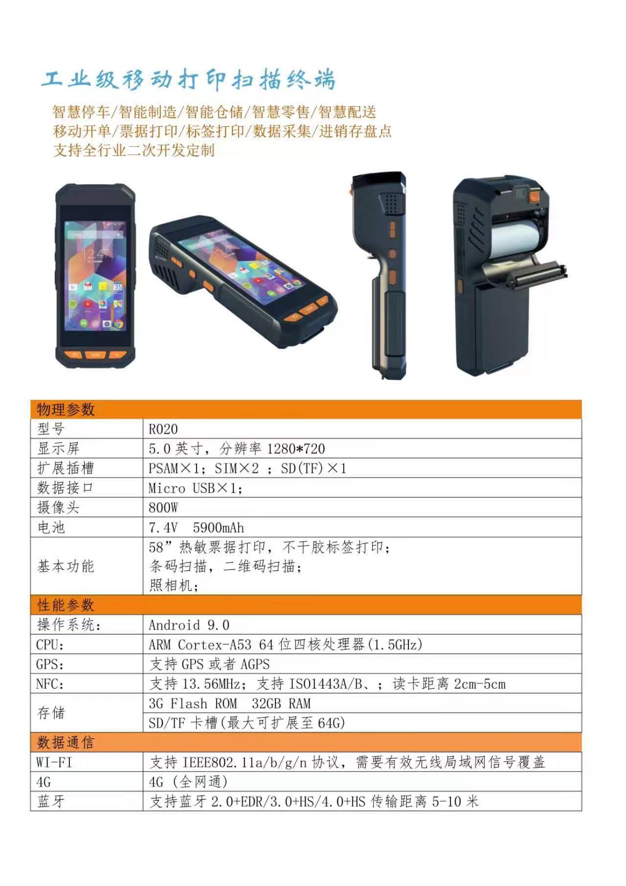 通(tōng)過4G移動網絡與(yǔ)管理中心通信的功能;車牌識別功能;支持讀卡功能;NFC拍照和圖片上傳功能;停車泊位管理圖形化和列(liè)表化功能;智能(néng)巡檢路段泊位實時停車狀況功能;打印收費小票及罰單功能;