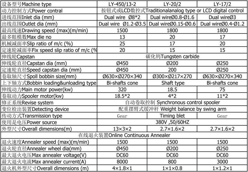 大(dà)拉機係列 大中拉係列 中拉機係列 中小拉係列 小拉機係列 微細線(xiàn)伸(shēn)線機係列 銅包鋁中拉(lā)係列 銅包鋁中小拉(lā)係列(liè) 銅包鋁(lǚ)小拉係列 不鏽(xiù)鋼中細線伸線(xiàn)機係列 不鏽鋼微(wēi)細線伸線機係列 鋁鎂合金大中線伸線機係列 鋁鎂合金細線伸線機(jī)係列 管式退火機係列(liè) 多頭拉(lā)絲機 絞線(xiàn)機係(xì)列 特殊拉絲機 電鍍機